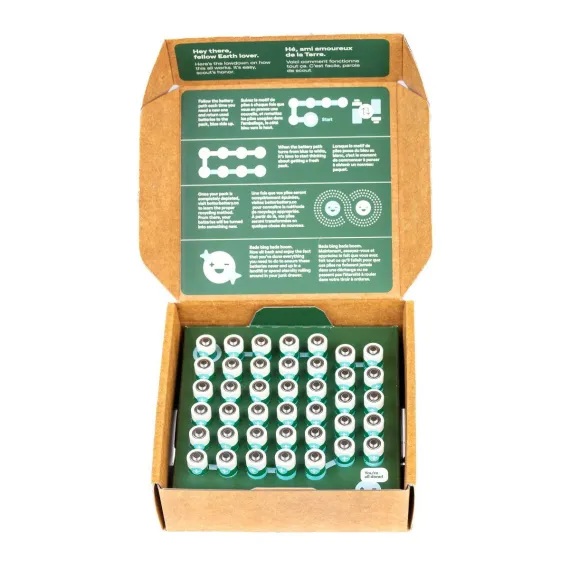 Power your home with the Better Battery Co. AA40 Alkaline Battery Kit. These high-performance, Certified Carbon Neutral batteries deliver the long-lasting energy you need for the devices you use most—whether it’s toys, gaming controllers, flashlights, remotes, or holiday decorations. The kit includes a reusable storage box to keep batteries organized and ready to go, plus a prepaid recycling program so you can send used batteries back for proper recycling—at no extra cost. Leak-resistant design helps protect your devices, while plastic-free packaging makes them better for the planet. With a 10-year shelf life, the AA40 Kit ensures you always have power on hand for everyday use, family fun, or unexpected emergencies. Count on Better Battery Co. for reliable power, easy storage, and a smarter way to recycle.