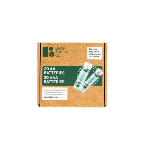 Better Battery Co. 40 Combo Kit 20 AA + 20 AAA High Performance Certified Carbon Neutral Alkaline Batteries