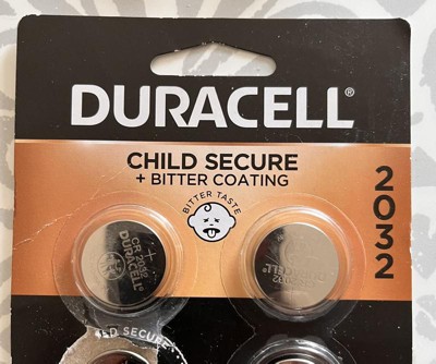 Duracell 2032 Lithium Coin Battery - 2pk Specialty Battery w/ Bitterant Technology: 3V, 265mAh