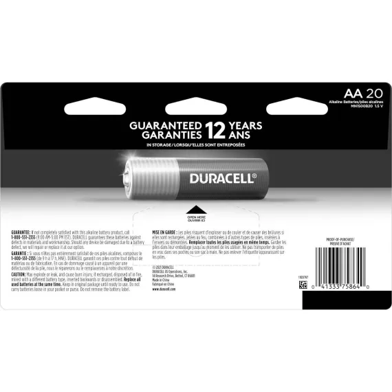 Duracell Coppertop batteries with POWER BOOST™ Ingredients deliver dependable power to your everyday devices throughout the home, like toys, remote controls, flashlights, calculators, clocks and radios, wireless mice, keyboards, and more. With a guarantee of 12 years in storage, you can rest assured they'll be ready when you need them. Duracell guarantees these batteries against defects in material and workmanship. From storm season to holiday needs, Duracell is the #1 trusted battery brand for the moments that matter most.