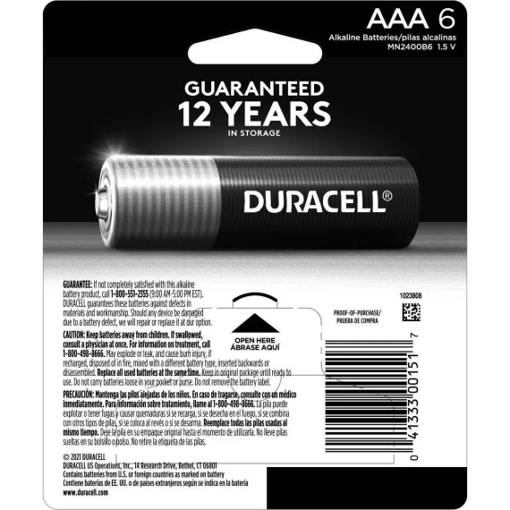 Duracell Coppertop AAA batteries with POWER BOOST™ Ingredients deliver dependable power to your everyday devices throughout the home, like toys, remote controls, flashlights, calculators, clocks and radios, wireless mice, keyboards, and more. With a guarantee of 12 years in storage, you can rest assured they'll be ready when you need them. Duracell guarantees these batteries against defects in material and workmanship. From storm season to holiday needs, Duracell is the #1 trusted battery brand for the moments that matter most.