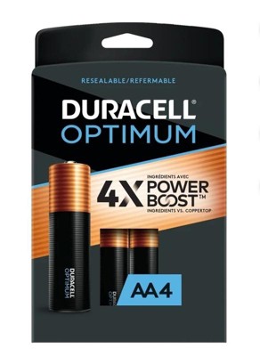 With 4X the patented POWER BOOST™ Ingredients vs. Coppertop, Duracell Optimum is our #1 best-performing alkaline battery. These batteries are packaged in a re-closeable package for quick, easy access and storage. You can rest assured our batteries will be ready when you need them as they are guaranteed for 12 years in storage. From storm prep to holiday needs, Duracell is the # 1 trusted battery brand for the moments that matter most.