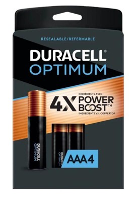 With 4X the patented POWER BOOST™ Ingredients vs. Coppertop, Duracell Optimum is our #1 best-performing alkaline battery. These batteries are packaged in a re-closeable package for quick, easy access and storage. You can rest assured our batteries will be ready when you need them as they are guaranteed for 12 years in storage. From storm prep to holiday needs, Duracell is the # 1 trusted battery brand for the moments that matter most.