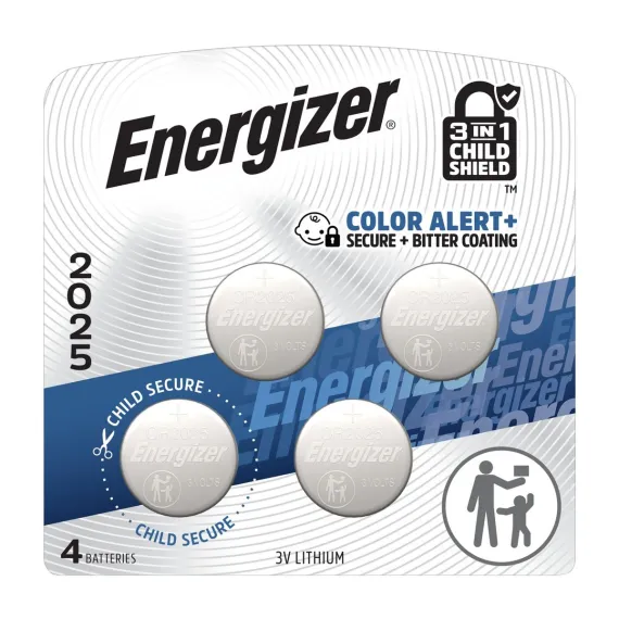 Ensure reliable, long lasting power for your important devices with the Energizer 2025 Lithium Coin Batteries, featuring the world’s first 3-in-1 Child Shield with three lines of defense: Color Alert, a bitter coating, and child-resistant packaging. Only Energizer helps kids stay safe with Color Alert technology that dyes the mouth blue seconds after contact with saliva to indicate possible ingestion. The non-toxic bitter coating helps discourage ingestion, while the child-resistant packaging serves as the first layer of protection. Energizer lithium 2025 batteries perform in extreme temperatures ranging from -22 to 140 degrees Fahrenheit for dependable power, even in the toughest conditions. Reach for these Energizer batteries when you need calculator batteries, key fob batteries, or replacement batteries for remotes. Energizer coin batteries are also an ideal power source for your keyless entry system, toys and games. Lasting up to 12 years in storage, these lithium batteries provide reliable power when you need it most.