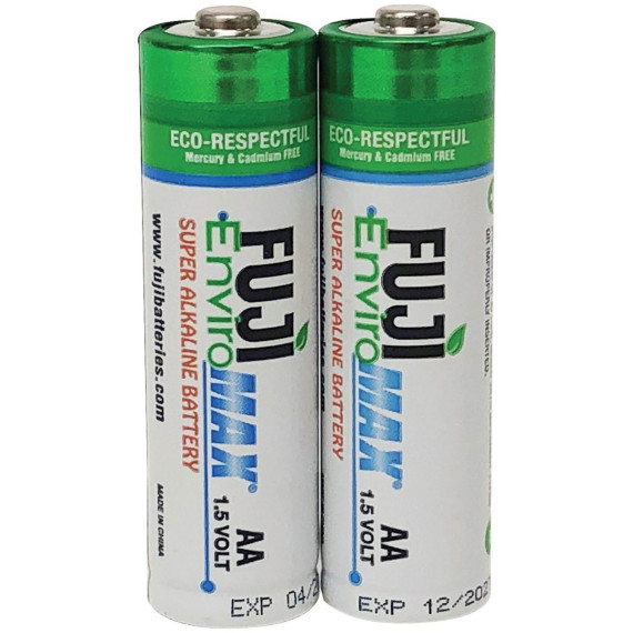 From Fuji comes environmentally respectful yet powerful batteries—the EnviroMax Super Alkaline Batteries! This 2 pack of AA batteries is designed for digital and high-drain devices and exceed industry standards with their 10-year shelf life. Nor are they packaged in non-recyclable PVC plastic. Instead, Fuji EnviroMAX batteries are made in some of the world’s most environmentally friendly battery plants, operating under some of the most strict standards of environmental responsibility. In fact, most of all resources used in the Fuji EnviroMAX manufacturing process are reused and recycled! Plus, independent tests show Fuji EnviroMAX batteries equal—and most often exceed—the performance and longevity of equivalent major brands.