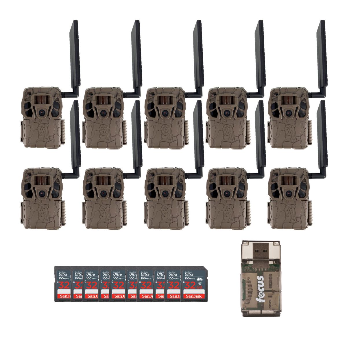 Browning Trail Camera Defender Wireless Vision Pro HD LivestreamNever Miss a Moment with Live Streaming to Your DeviceFeel the thrill of the hunt or keep watch over your property from anywhere with the Defender Vision Pro HD Live—the only trail camera that delivers true real-time streaming straight to your device. This camera goes beyond capturing moments; it brings them to you live through the Strike Force Wireless app, letting you tap into the action as it happens. Watch as deer move through your favorite hunting spot or monitor your property with unparalleled immediacy, no matter where you are.Precision Clarity, AnytimeThe Vision Pro HD Live doesn’t just show you the wild; it immerses you with 1080p Full HD video and stunning 46MP images that let you see every detail. Equipped with AT&T and Verizon SIM cards, this camera offers high-speed 4G LTE connectivity from even the most remote areas, so you get sharp, real-time visuals without delay. Experience the outdoors in rich, vibrant clarity, and be the first to know when something big appears.Smart AI Recognition and Powerful Night VisionDesigned with enhanced AI recognition software, the Vision Pro HD Live filters out unwanted triggers like raccoons or squirrels, capturing only the activity that matters. When night falls, the 110-foot infrared illumination and Illuma-Smart technology ensure every nocturnal movement is captured clearly. With adjustable IR flash settings, you can tailor the camera to your specific scouting needs, day or night.Dependable Security and GPS-Enabled TrackingIn addition to its live streaming, the Vision Pro HD Live camera offers GPS Theft Protection and precise GPS-tagging on every shot, so you can pinpoint your camera’s exact location anytime. The high-gain antenna boosts connectivity in even the toughest terrains, and with a lightning-fast 0.135-second trigger speed and 0.5-second recovery time, you’re always ready to catch every moment.All-In-One High Speed Card ReaderTransfer data to and from your PC with this All-In-One High-Speed USB 2.0 Card Reader by Focus Camera. The high-speed memory card reader provides a transfer rate of 480 Mbps and supports most media cards, including SD, SDHC, micro SD, MMC, TF, M2, and PRO Duo cards. Compatible with both Mac and PC systems, this USB card reader is made with a plastic shell that is exceptionally durable.32GB Ultra SDHC UHS-I Memory CardThis 32GB Ultra SDHC UHS-I Memory Card is designed for compact to mid-range point-and-shoot cameras, offering up to 100MB/s transfer speeds for quick file sharing. It lets you capture high-quality photos and Full HD videos (1080p) while providing ample storage for hours of content. Built for reliability, this durable card is waterproof, shockproof, x-ray proof, and temperature-proof, ensuring your memories stay protected in any situation..