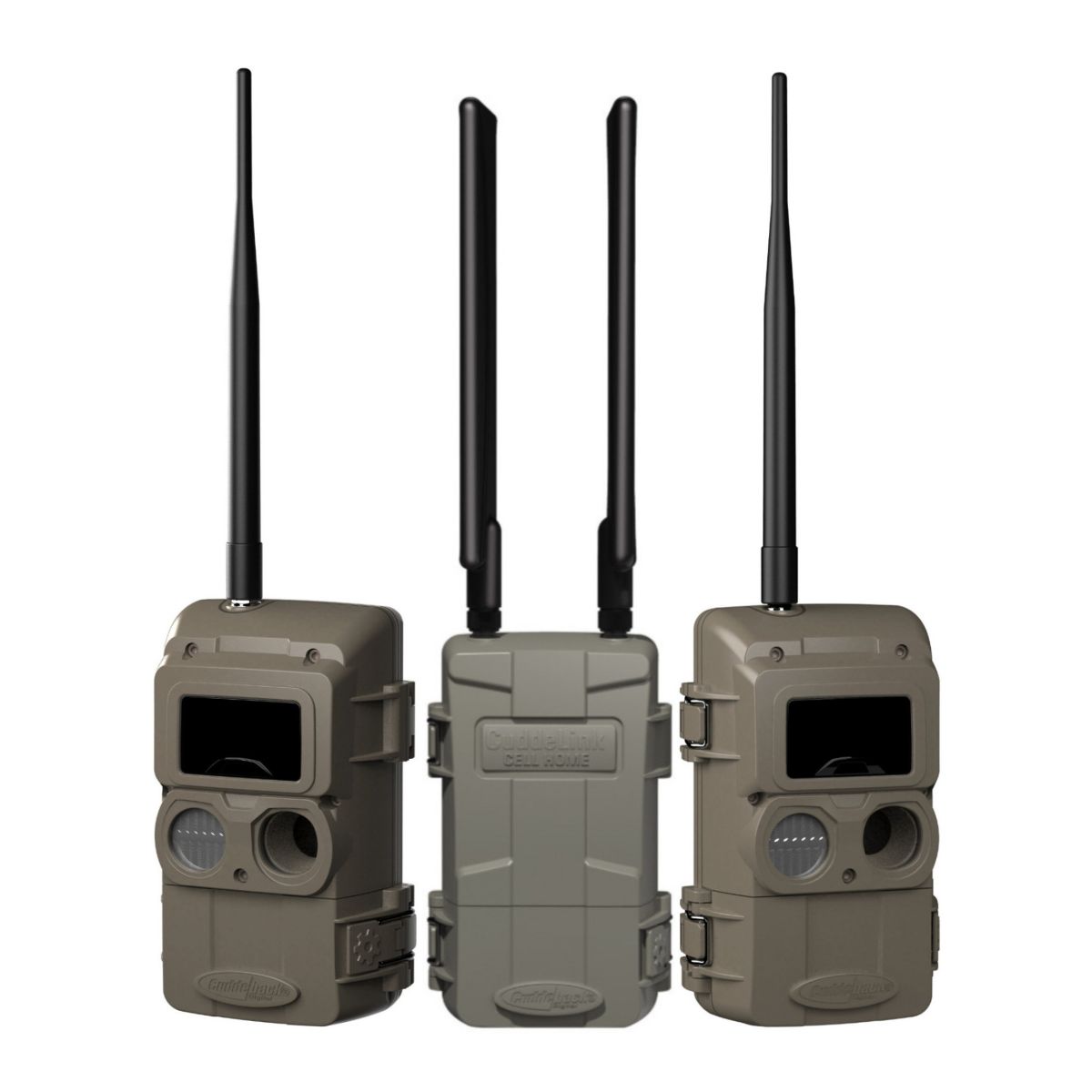 Cuddeback CuddeLink Wireless, 3rd Gen Sensor, Low-Glow Black Flash LED Camera with Antenna and StrapThe Cuddeback CuddeLink Wireless, 3rd Gen Sensor, Low-Glow Black Flash LED Camera can work as a Remote or Home camera in the patented CuddeLink wireless network. Wireless TechnologyThe wireless network technology allows users to check their game cameras without contaminating their hunting property with human scent. It saves the trouble of having to go to each camera to pull the card. The camera will work for the user to pull a single card in a Home unit or they can deploy the CuddeLink Cell to have the images transmitted to their phone on a data plan starting as low as $10 per month.SupportThe CuddeLink system supports a network size of 24 cameras. The Remote cameras can be placed where there is no cell service but will link to the CuddeLink Cell so it can transmit the images to the user. SpeedThe camera has a 1/4 second trigger speed, and delays ranging from 5 seconds to 5 minutes. DelayThe CuddeLink camera has a patented auto-camera delay.Battery and StorageThe camera runs on 4D batteries and uses an SD card with up to 256GB.TechnologyThe camera has a 3rd Gen sensor with 7 sensitivity settings. Black Flash and DisplayThe camera is equipped with low-glow Black Flash LEDs measuring 850nm and has a blue backlit display for easy viewing.CompatibilityIt is compatible with all power and mount options. ModesThe camera follows dual timelapse modes (Prime Time and standard). ImageHigh-def sensor optimizes image clarity and brightness for LTE delivery and phone viewing. Cuddeback CuddeLink Cell Home with Patented Wireless Technology and Dual Paddle AntennasCuddeLink HOME Cell operates as the HOME in the CuddeLink network. Add Cell HOME to a CuddeLink network and images from up to 23 CuddeLink cameras will be delivered using a single low-cost data plan. A hidden benefit is CuddeLink allows placing cameras in areas without LTE coverage, and the CuddeLink network will send those images to Cell HOME placed in an area with LTE coverage. As long as you have 1 location with LTE coverage you can deploy CuddeLink cameras and get the benefit of LTE delivery from all your cameras. Cuddeback's CAMP website or smartphone APP allows you to set up and control CuddeLink cameras from anywhere.FeaturesRuns on 4D batteries (sold separately)Uses SD card up to 256GB in size (sold separately)Blue backlit display for easy viewingCompatible with all current Cuddeback power accessories and Genius mountsDesigned by Cuddeback in the USA.
