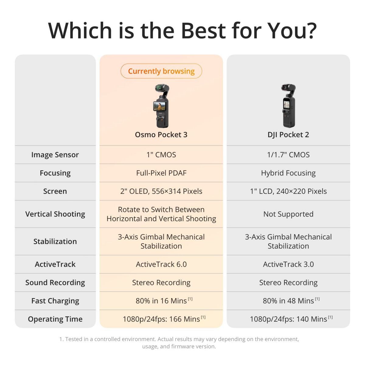 The 2-inch rotatable touchscreen supports quick switching between horizontal and vertical shooting. Just a simple twist, and you are ready to go. ActiveTrack 6.0 provides multiple follow modes, allowing you to produce smooth, cinematic footage with just one hand. Stereo recording and direct connection to two DJI Mic 2 Transmitters ensure crystal-clear sound and effortless creation.