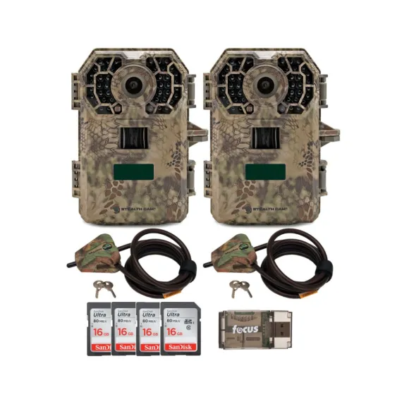 Stealth Cam 2022 G42NG 32MP Trail Camera 2-Pack with Cable Locks and 4 Cards Kit