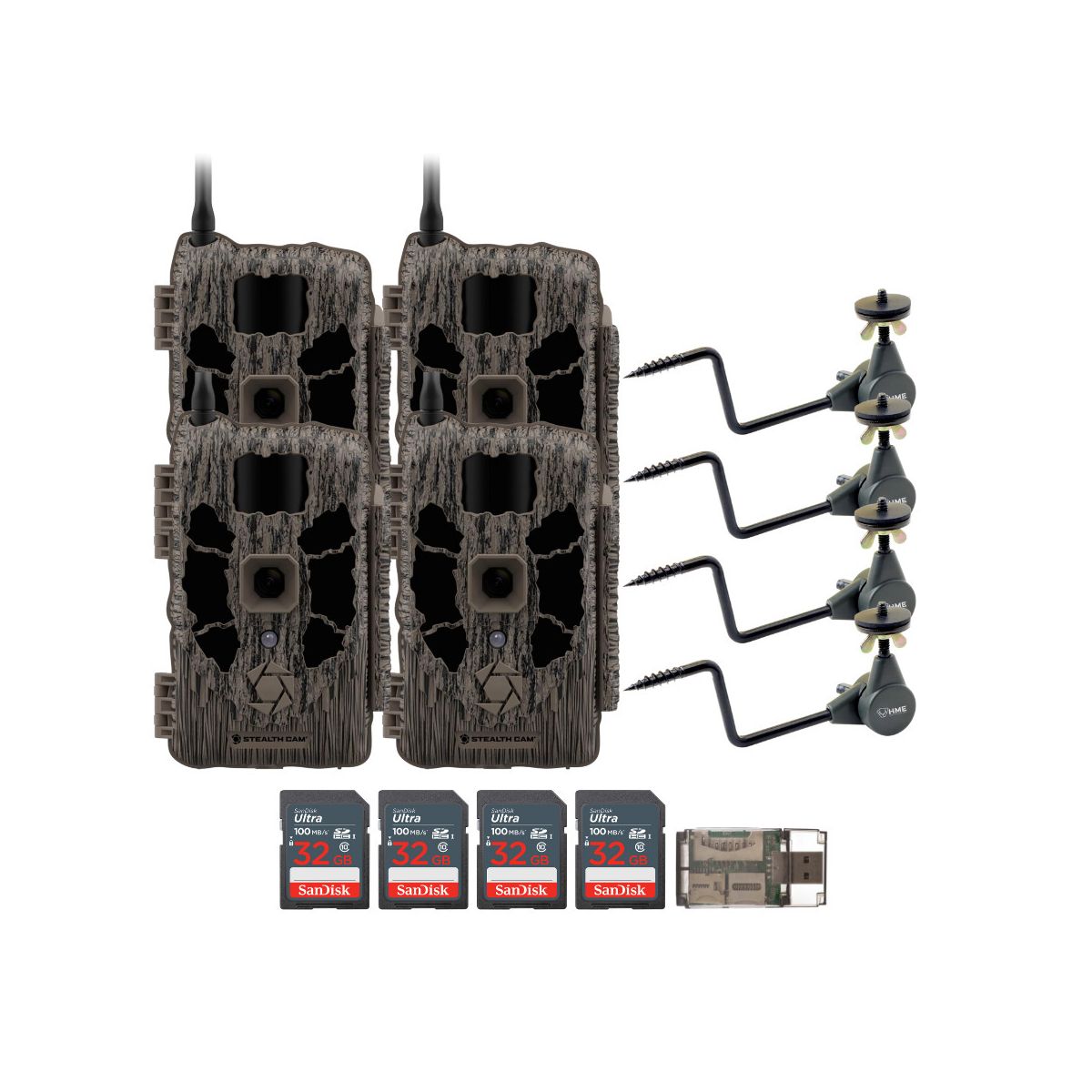 Stealth Cam (Four) DECEPTOR MAX 40MP Trail Camera with Camera Holder 32GB Memory Card and Card Reader