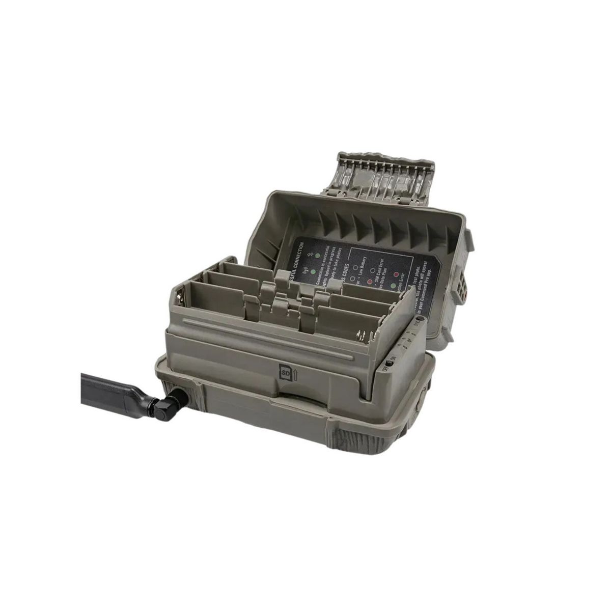 Stealth Cam Fusion Max Cellular Trail Camera with Real-Time HD Video and 80ft Infrared DetectionThe Fusion MAX Cellular Trail Camera offers expanded power, real-time media capture, and reliable cellular connectivity to help you monitor wildlife activity more effectively. Built to adapt in any environment, this camera is ideal for both remote and accessible scouting setups.Expanded Battery CapacityHolds up to 16 AA batteries (not included) for extended field life, reducing the frequency of battery changes during long deployments.Alternative Power CompatibilityWorks with Stealth Cam’s FieldMAX rechargeable lithium battery cartridges and solar panels. Enables alternative, reusable power options for remote or off-grid setups.Automatic Network CoverageEquipped with dual SIM cards and Automatic Network Coverage technology. Automatically connects to the strongest signal between Verizon and AT and T, ensuring consistent transmission through the Command Pro App.On-Demand Photo and Video CaptureCapture and transmit real-time images and HD videos with audio on request. Useful for immediate monitoring without retrieving the SD card.High Detection and Flash RangeFeatures an 80-foot motion detection and infrared flash range. Effectively monitors large areas and increases the chance of capturing distant movement.Fast Trigger and Burst Mode0.4-second trigger speed with a 2-59 second recovery time. Burst mode captures 1 to 6 images per trigger, improving chances of documenting key activity.Multiple Resolution OptionsSupports photo resolutions of 36MP, 16MP, 8MP, and 4MP, and 720P HD video. Allows users to choose image quality based on storage needs or network bandwidth.Detailed Image StampImages include time, date, moon phase, temperature, and camera ID. Helps with event tracking and environmental analysis.Secure and Flexible MountingComes with a built-in lock latch and ¼-inch threaded insert. Includes 12V DC auxiliary jack for external power or mounting accessories..