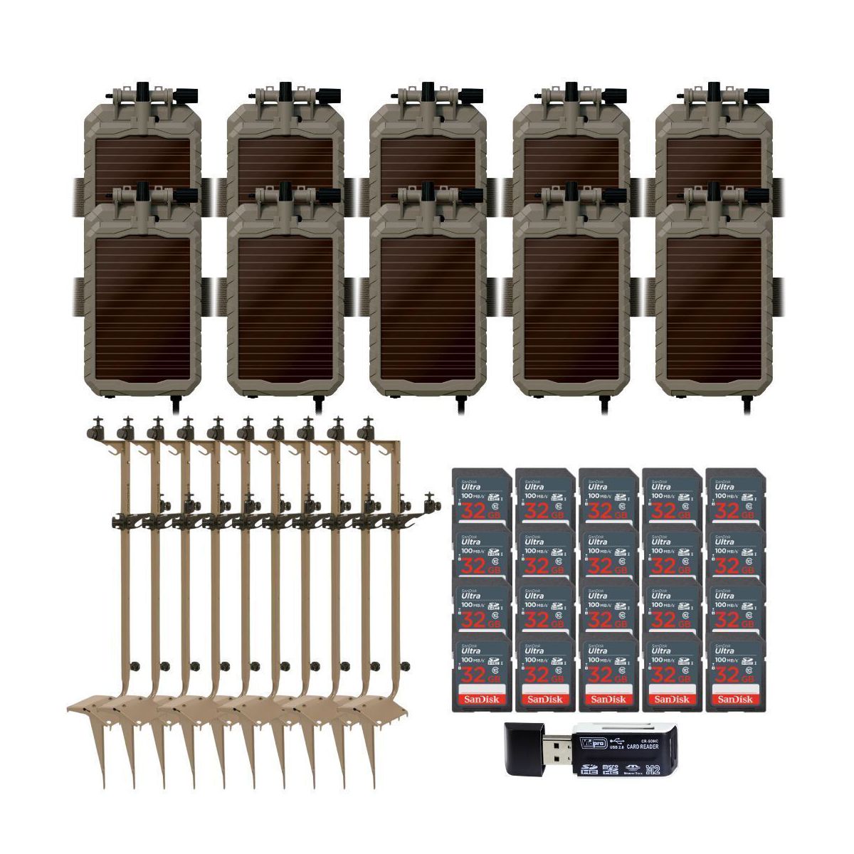 Stealth Cam Mounting Post for Camera& Solar Pak with 12V Solar Battery Pack 32GB Memory Cards and Card Reader (10 Pack)