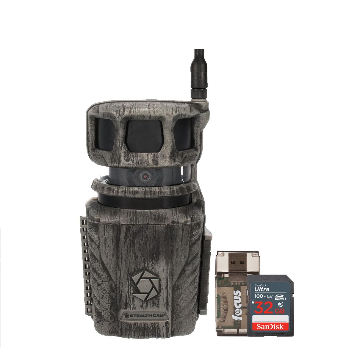 Stealth Cam Revolver 36MP 360-Degree Cellular Trail Camera with 1/4-Inch Threaded MountSanDisk 32GB Ultra SDHC UHS-I Memory Card (100MB/s)The SanDisk 32GB Ultra SDHC UHS-I Memory Card allows you to capture better pictures and Full HD videos with your compact to mid-range point and shoot cameras. Store tons of photos and videos, with speeds up to 100MB/s to quickly transfer it all to your computer.Capture the MomentThis SanDisk Ultra SD card delivers exceptional photo and video shooting performance to let you capture your memories when they happen.Picture and VideoCapture amazing quality pictures and Full HD video with your compact point-and-shoot camera.Keep ShootingShoot tons of photos and hours of Full HD video (1080p) without changing the card.DurableThis SanDisk Ultra SD card is durable and tested to protect your memories from life’s mishaps—waterproof, shockproof, x-ray proof, and temperature-proof.Focus All-In-One High Speed Card ReaderTransfer data to and from your PC with this All-In-One High-Speed USB 2.0 Card Reader by Focus Camera. The high-speed memory card reader provides a transfer rate of 480 Mbps and supports most media cards, including SD, SDHC, micro SD, MMC, TF, M2, and PRO Duo cards. Compatible with both Mac and PC systems, this USB card reader is made with a plastic shell that is exceptionally durable..