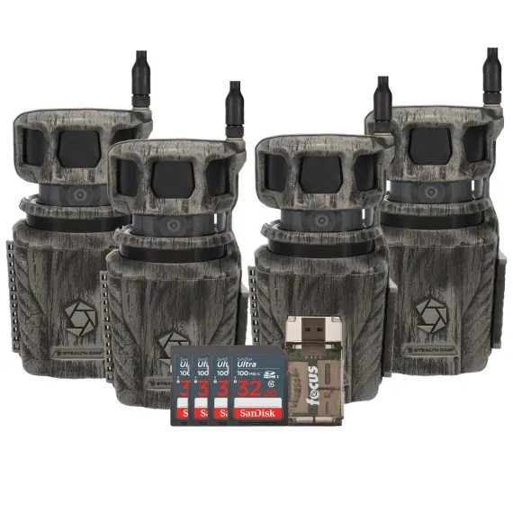 Stealth Cam Revolver 36MP 360 Degree Cellular Trail Camera with 32GB Memory Cards and Card Reader 4 Pack