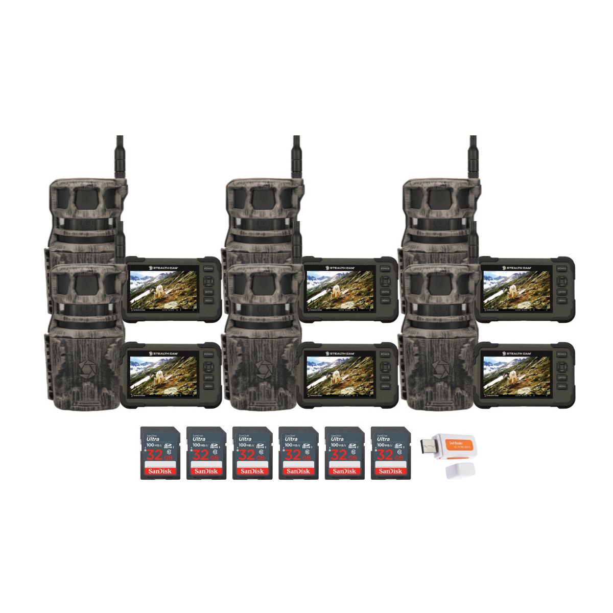 Stealth Cam Revolver 36MP Pro 360 Degree Cellular Trail Camera with Card Viewer 32GB Memory Cards and Card Reader (6 Pack)
