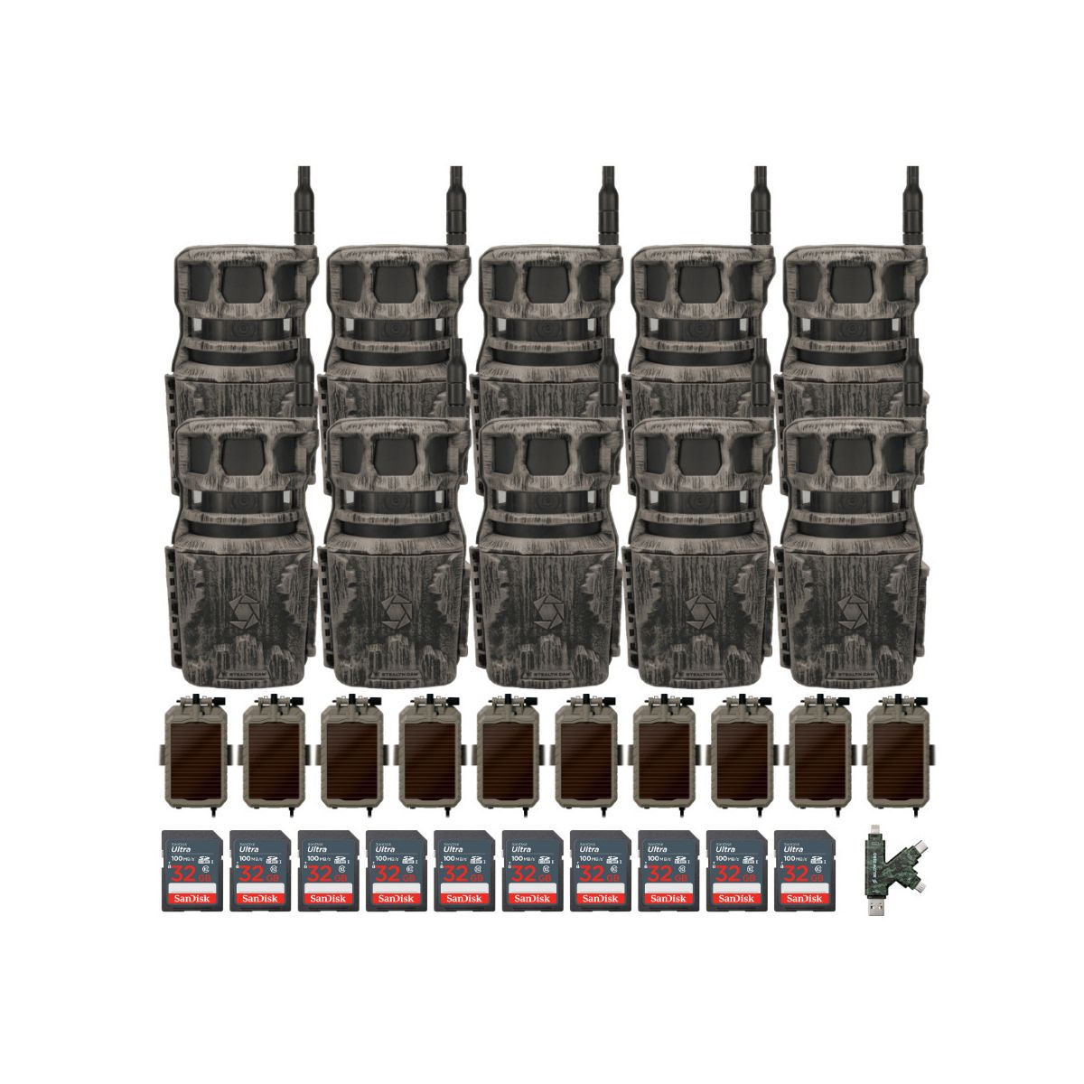 Stealth Cam Revolver 40MP Pro 360 Degree Cellular Trail Camera with Solar Battery Pack 32GB Memory Cards and Card Reader (10 Pack)