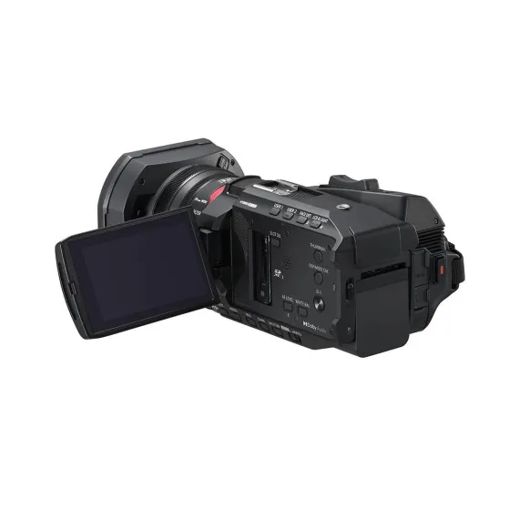 Designed for creators on the move, the Panasonic X1200 Camcorder is lightweight, compact, and easy to handle, with a high-capacity battery that lasts up to 6 hours and 10 minutes (60 Hz). The lens goes from 25mm* wide-angle to 600mm telephoto, with 24x optical zoom-extendable to 32x in 4K or 48x in FHD (35mm equivalent). Face Detection keeps your focus sharp and exposure spot-on, while color recognition makes tracking smooth. The 5-axis HYBRID O.I.S. ensures steady shots, and the Ball O.I.S. System handles even subtle blurs with ease. Capture stunning 4K at 59.94p/50p with 100 Mbps HEVC recording or go for dramatic super slow-motion at 120fps/100fps in 10-bit FHD. Thanks to this camcorder's advanced cooling system with an ultrathin fan, you get uninterrupted 4K 60p recording in a lightweight, portable body. * 35mm camera equivalent.