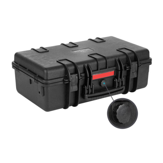The case is constructed of impact and ultraviolet resistant polypropylene and has a fully customizable foam interior for superior shock protection. A pressure relief valve allows you to slowly and safely equalize the pressure inside and out.