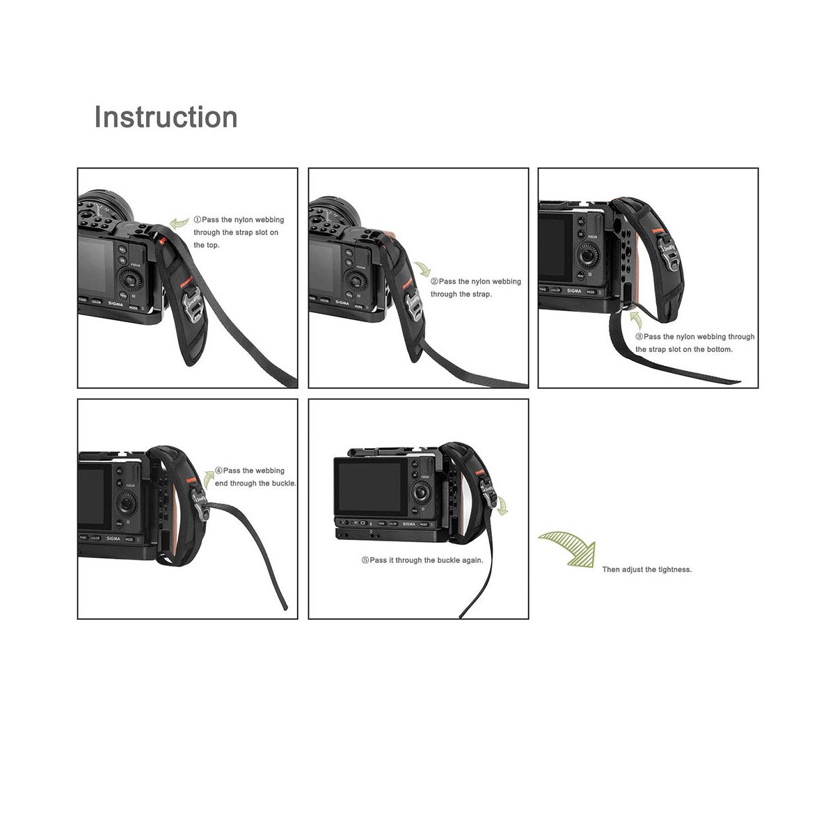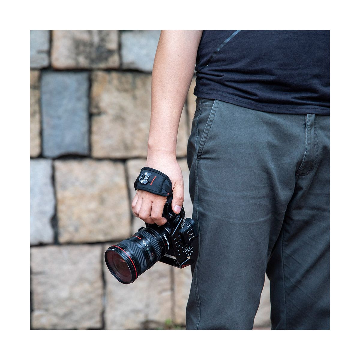 Effectively protect the safety of your camera and enhance the shooting stability to a certain extent when using a camera cage or an external side handgrip for handheld shooting. The width of its nylon webbing is 12mm and will be compatible with camera cage and external side handgrip with strap slot on both upper and lower sides and its width no less than 12mm.