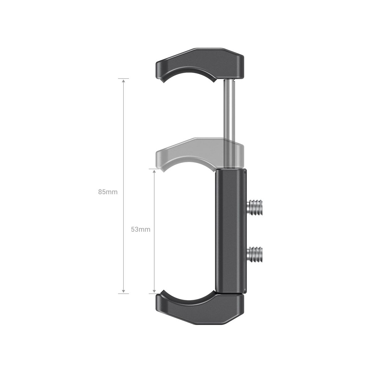 Designed to attach a power bank to the camera rig when a sustainable charging solution is required. It holds power banks with width ranging from 53mm to 85mm, which covers most products in the market. On the top, bottom and back of the holder are 1/4’’-20 threaded holes, which makes it convenient to attach the holder to different places.