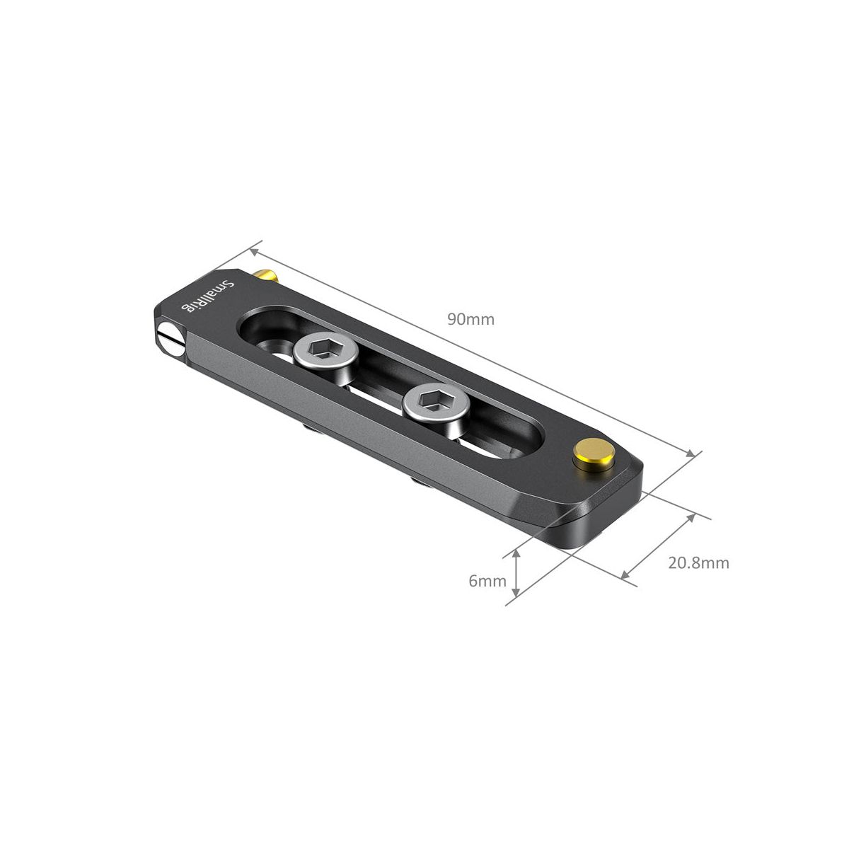 Fixed to your camera rig by two 1/4’’-20 screws. It is 90mm long, compatible with NATO accessories such as clamps, handles and monitor holders, enabling you to quickly attach and release the rig components. The safety pins on both ends prevent accessories from accidentally sliding off.