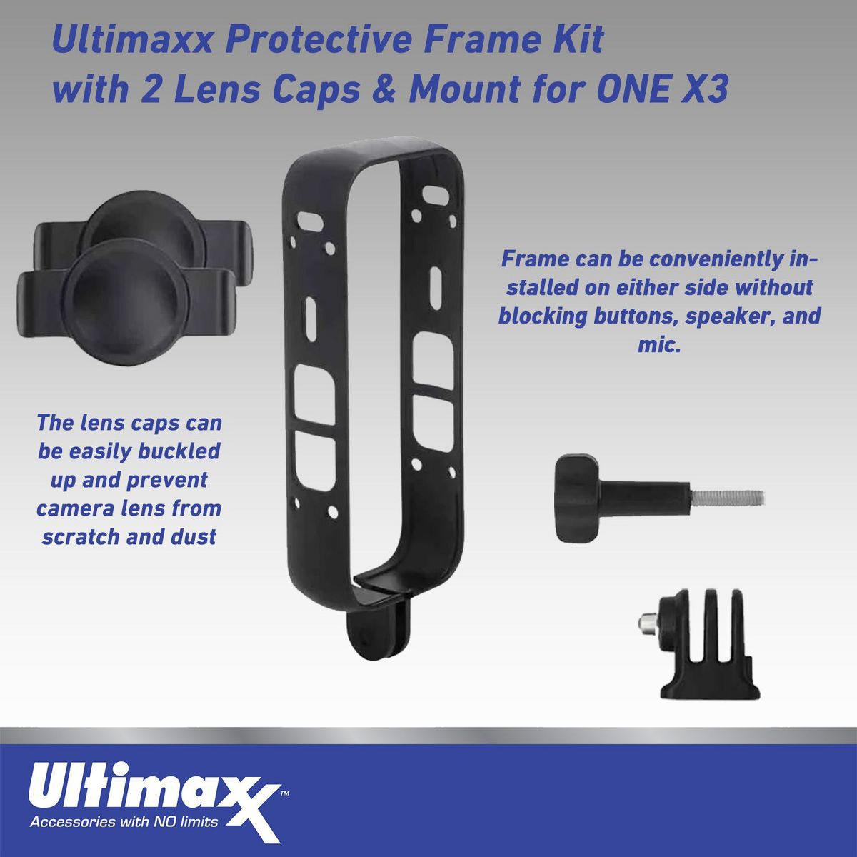 Ultimaxx ABS Frame Kit w/ 2 Lens Caps & Mount for Insta360 ONE X3