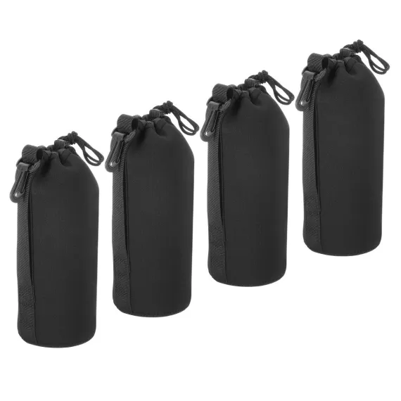 Unique Bargains Neoprene Waterproof Shockproof Camera Drawstring Lens Bag Black 4 Pcs 3.1" ID x 3.9" H