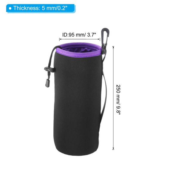 The Neoprene Lens Pouch Bag offers waterproof, shockproof, and wear-resistant protection for your camera lens. It is versatile and suitable for most lens brands, and can also be used for items like water cups. The bag provides good heat preservation and anti-scald effects. It features a strap and hook for carrying by hand or attaching to a backpack or belt. The drawstring design secures the lens, while the 5mm thick neoprene fleece protects against weather and scratches. Ensure the lens fits by checking the size before purchasing.
