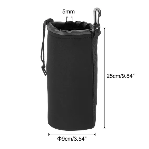The Neoprene Lens Pouch Bag is crafted from quality neoprene, offering waterproof, shockproof, and wear-resistant protection for your camera lens. It prevents accidental scratches, bumps, and dust, ensuring your lens remains safe. This versatile camera bag is suitable for a variety of lenses across different brands and can also accommodate water cups or coffee cups. It features good heat preservation and anti-scald effects. The lens pouch bag comes with a strap and hook, allowing you to carry it by hand or attach it to your backpack or belt. Its drawstring design safeguards the lens from accidental drops. Easy to use, simply place your camera lens into the bag for convenient travel storage. Ensure the lens fits by checking the size before purchasing.