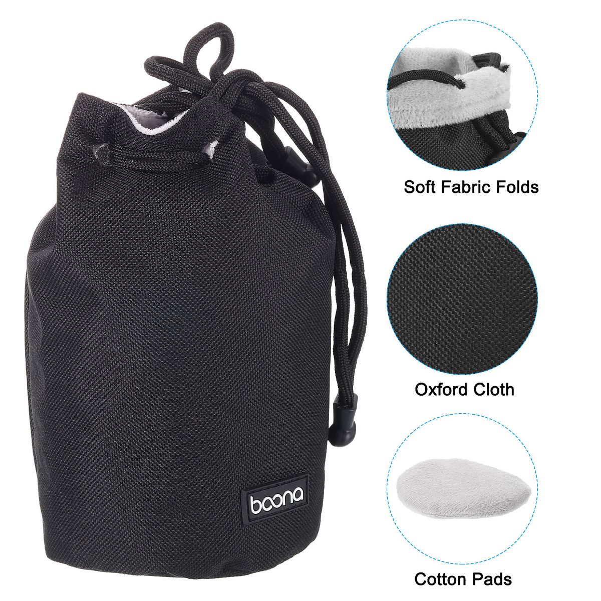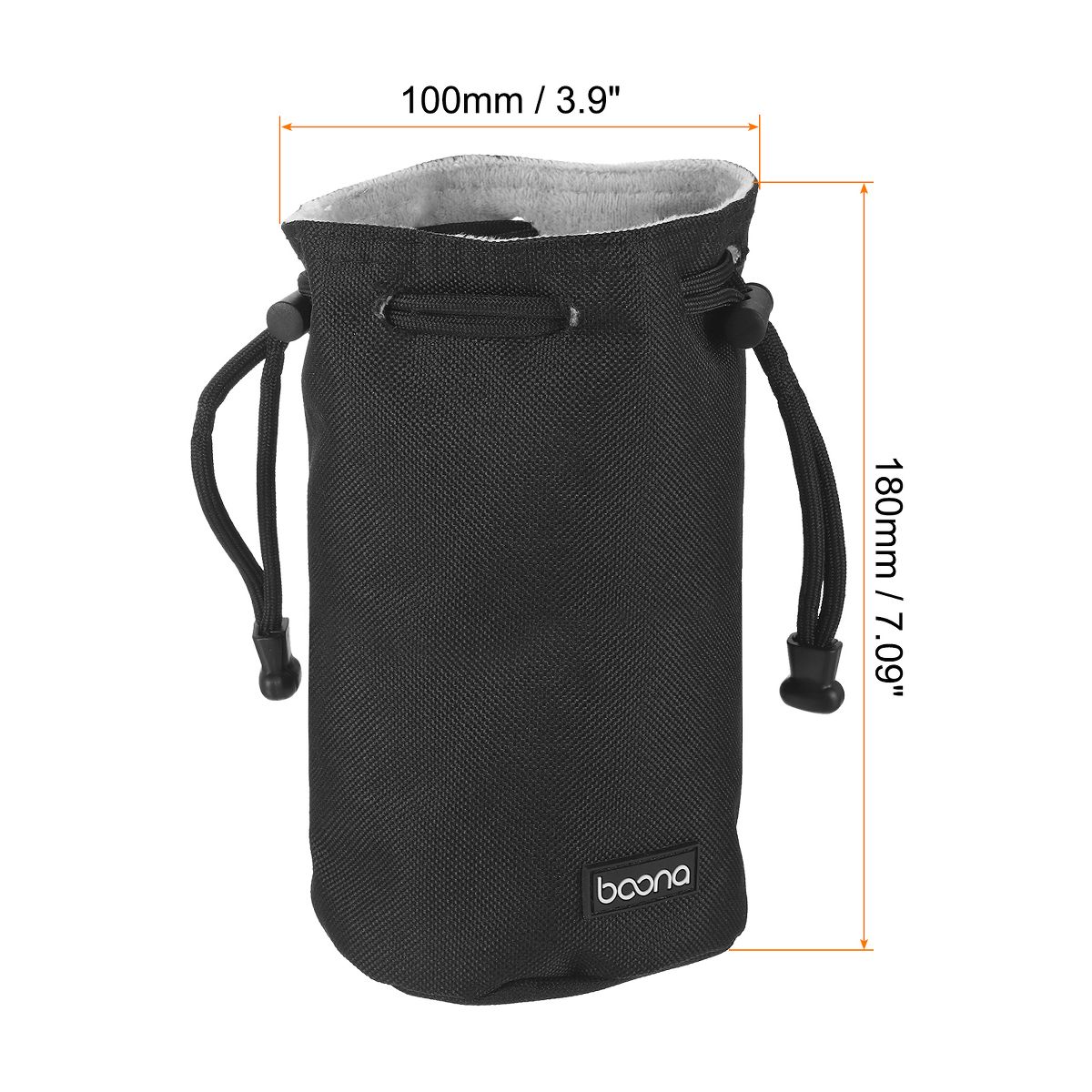 Unique Bargains Waterproof Shockproof Wear-resistant Drawstring Lens Pouch Bag 1 Pc Black 5.12" x 3.54"