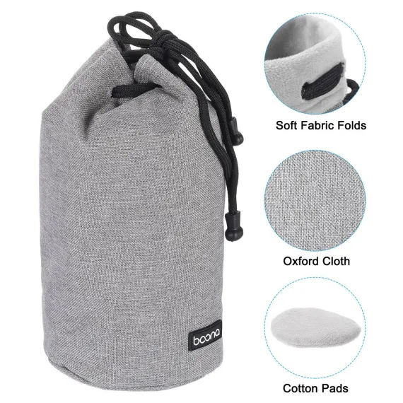Unique Bargains Waterproof Shockproof Wear-resistant Drawstring Lens Pouch Bag 1 Pc Black 5.12" x 3.54"