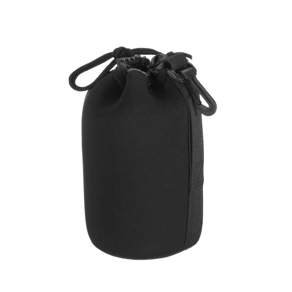This Neoprene Lens Pouch Bag is designed to be waterproof, shockproof, and wear-resistant, providing excellent protection for your camera lens against scratches, bumps, and dust. It is versatile and suitable for most lenses across various brands. Additionally, it can be used to keep water cups and coffee cups, offering good heat preservation and anti-scald effects. The pouch features a strap and hook for convenient carrying options, either by hand or attached to a backpack or belt. The drawstring closure ensures that the lens is secure and protected from accidental drops, adverse weather, and collisions. Before purchasing, please check the size to ensure the lens fits into the pouch.