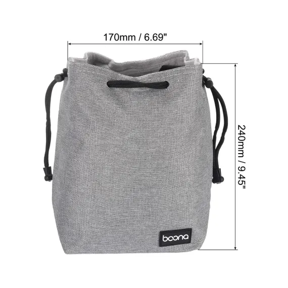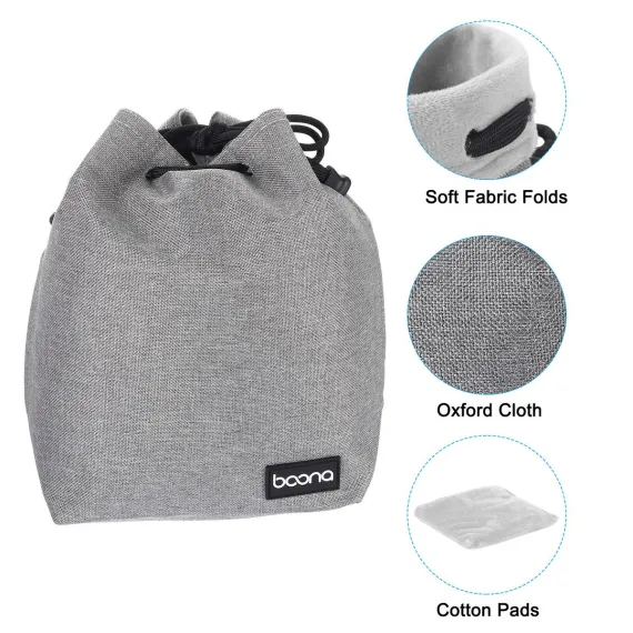 Unique Bargains Waterproof Shockproof Wear-resistant Lens Pouch Bag with Cotton Pad Grey 3.94" x 3.94" x 6.69"