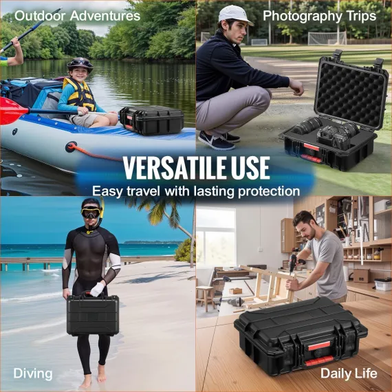 Pre-Cut Foam: Vevor waterproof hard case come with pre-cut foam lining ensures that this weatherproof case can easily accommodate equipment like cameras and drones while allowing you to carry it effortlessly during outdoor adventures, without worrying about damage to your valuables.