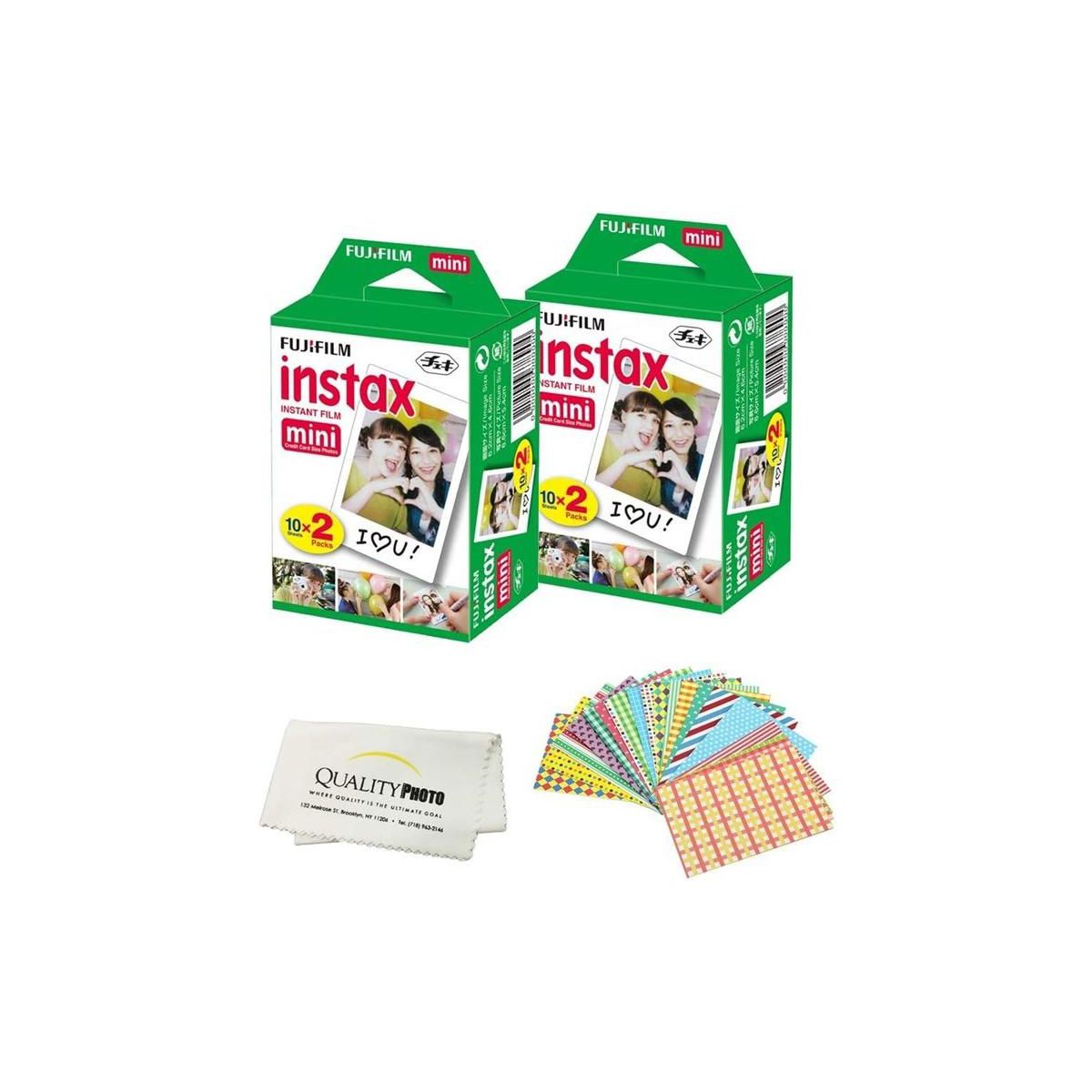Fujifilm INSTAX Mini Instant Film 20 Sheets for Fujifilm Instax Mini 8 9 11 12 Cameras + Frame Stickers and Microfiber Cloth Accessories White