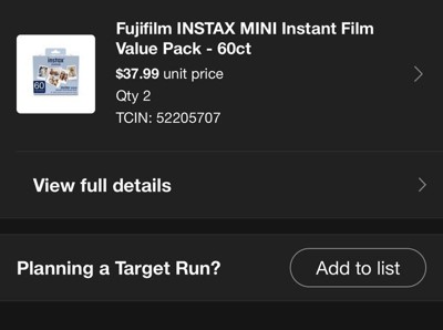 I bought this pack of film over a month ago. And the first three photos or so printed fine. Then the next 4 were entirely blank. I contacted customer service and they told me that the return window has passed so there was nothing to be done even if the product is faulty. So only buy from target if you intend to use all 60 photos in the same 30 day frame to test that all the packs work. Oh but remember you can only open one pack at a time because taking it the film out and exposing it to light will destroy it. So I guess buying in bulk is just discouraged at Target