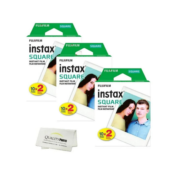Fujifilm Instax Square Instant Film - 20 Exposures - for use with The Fujifilm instax Square Instant Camera + Quality Photo Microfiber Cloth