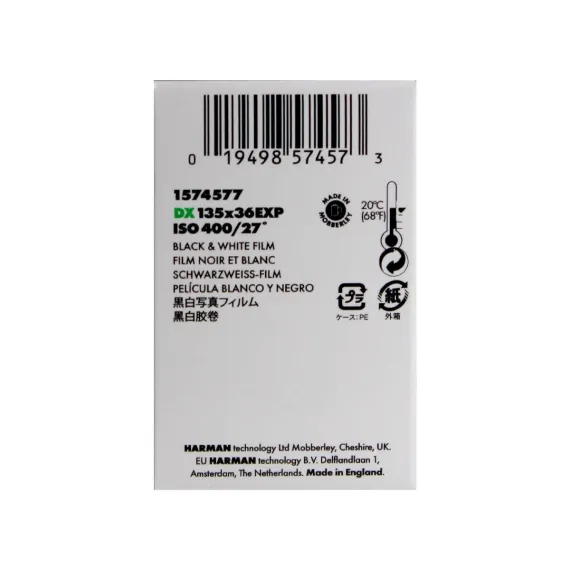 Ilford's HP5 Plus Black and White Negative Film is a traditional and versatile panchromatic film designed for general use in a wide variety of shooting conditions. Exhibiting notably wide exposure latitude, this film responds well to use in mixed and difficult lighting and provides medium contrast for greater overall control. It has a nominal sensitivity of ISO 400/27° when developed in standard black and white chemistry, and responds well to push processing. HP5 Plus is a flexible film type that is ideally suited for use in general photographic applications in an array of different lighting conditions.