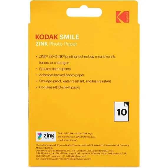 Kodak 3.5x4.25 inch Premium Zink Print Photo Paper (10 Sheets) Compatible with Kodak Smile