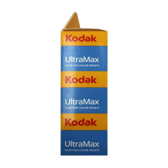 Kodak's UltraMax 400 is a high-speed, daylight-balanced color negative film offering a wide exposure latitude for greater versatility as well as a fine grain structure with consistent and accurate colors. Optimized skin tone reproduction makes this film suitable for portraiture while a vibrant overall color palette benefits general and outdoor photography. It has a nominal sensitivity of ISO 400/27° and is well-suited to both scanning and enlarging applications.