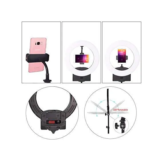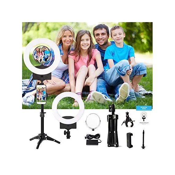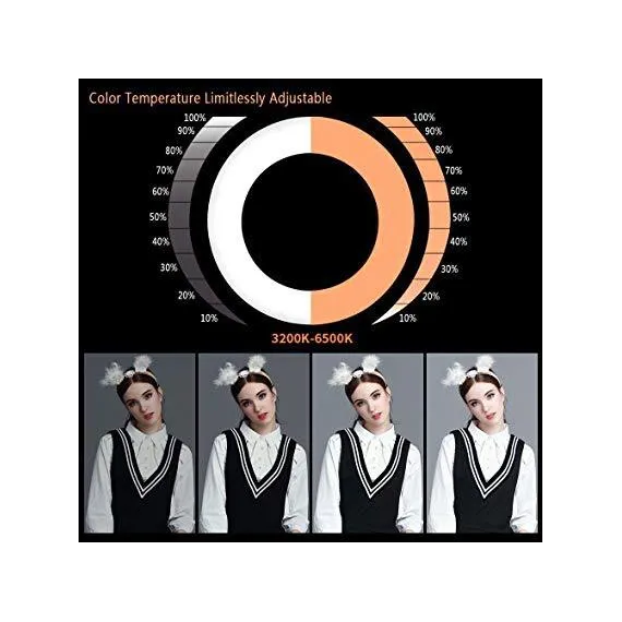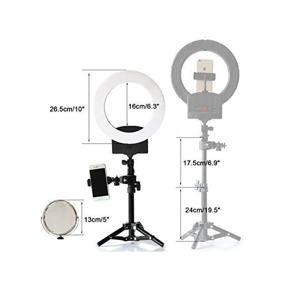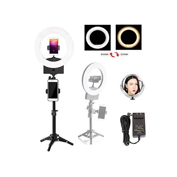 10" 3200K~6500K Dimmable Selfie Ring Light with Adjustable Light Stand,Makeup Mirror and Phone Holder, Perfect Desktop LED Lamp for Vlogs,YouTube Channel,Makeup,Salon …