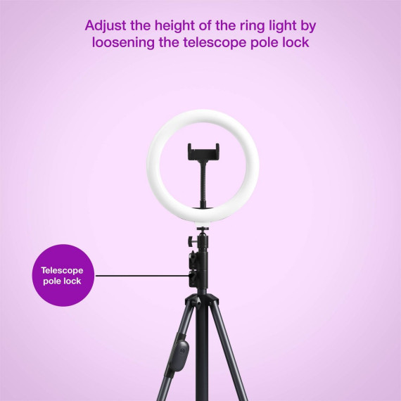 Capture a perfect shot with the 12" RGB Ring Light with Tripod from heyday™. This 12-inch diameter RGB light offers multiple color modes to suit any setting. With a standard screw mount and adjustable height between 43-84 inches, this Bluetooth-enabled light is designed for convenience and ease of use. The rechargeable battery, complete with a wall charger, ensures you never miss a moment.