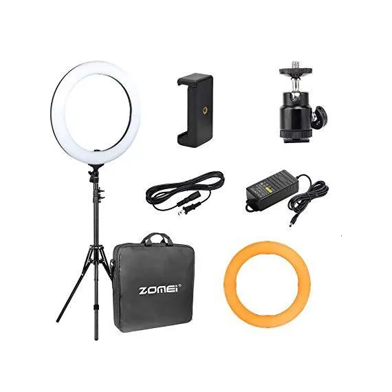 18'' Ring Light with 70''Stand,ZoMei Dimmable LED Ring Light with Tabletop Stand for Making up, YouTube Videos with ballhead, Phone Holder & Diffuser Cloth
