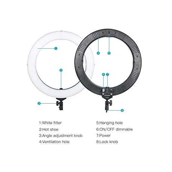 Make sure this fits by entering your model number. 【DIMMABLE LIGHT】: You can adjust the brightness by twisting the dimmable knob and change the light color by using the orange filter board 【SOFT LIGHT】: Soft light are widely use in different area which provide your subject more pleasing looking and transit the shadow more smoother. The ring light covered with a white plastic soft light board and we also provide an extra detachable soft light cloth 【RING LIGHT WITH STAND】: The ring light come with a stand. The stand can be extend from 36 inch to 74 inch. You can adjust the height according to your needs 【LIGHTWEIGHT & ULTRA SLIM】: The weight of the ring light only 894g and the thickness only 1 inch. Super easy to set up and storage 【MUTI PURPOSE USE】: This led ring light is widely applies to portrait, makeup, advertisement photography, videography, wedding photos, beauty treatment, cosmetology, nail art etc. It’s also popular among web celebrity in social media such as YouTube, Facebook, Instagram, Pinterest, Snapchat, Twitter etc