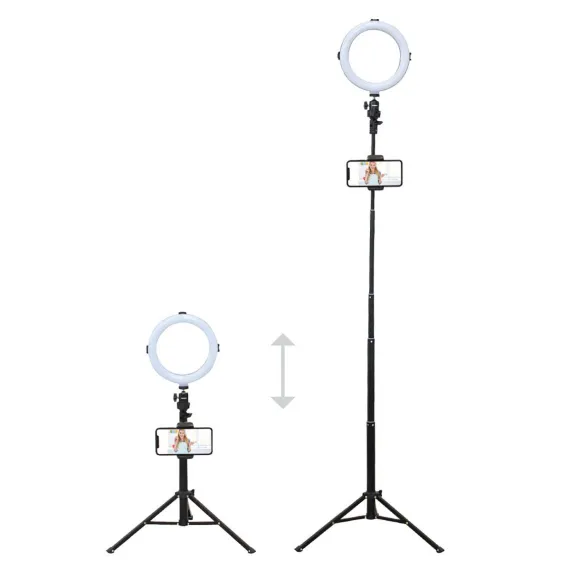 Enhance your social media posts with the Bower® 8-In. Selfie Ring Light Studio. You are a creator and the Ring Light Studio kit transforms your smartphone into a professional photo studio, allowing you to take videos at night or take great selfies in dark areas. It's great for creating live videos with your phone or computer, vlogging, live videos, video chats, social media, live streaming, health and beauty, and more. This kit includes an 8-in. ring light, a tripod that extends from 17.5-in. to 51 in. tall, a phone holder with a pivot mount, a wireless remote shutter, and a smartphone clip adapter. The ultra-wide range allows you to create professional-looking videos with ease. Choose from 10 different levels of brightness and 3 different color modes (white light, natural light, or warm light) for the best videos. Enhance your videos and social media posts with the Bower® 8-In. Selfie Ring Light Studio.