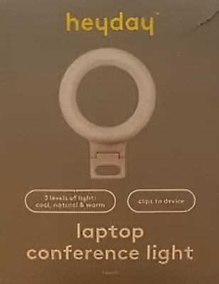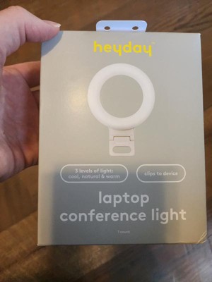 The heyday™ Clip-On Conference Ring Light will instantly brighten up your video calls, vlogs, Zoom meetings and selfies. Designed for convenient use, this 6.3-inch high ring light features a clip-on design that attaches easily to the back of your laptop to provide a key light when you're working while traveling or to your phone for excellent selfies in a nightclub or other dimly lit environment. This portable light is made in a pocket-friendly compact size that you can slip into your laptop bag or handbag for illumination on the go, and it's USB-powered, so you can use it anywhere.