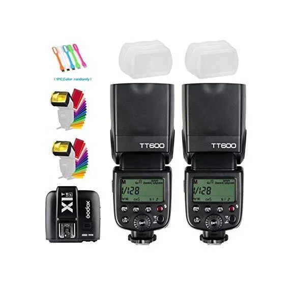 Godox 2X TT600 High Speed Sync 2.4G Wireless Camera Flash Speedlite +Godox X1T-N Remote Trigger Transmitter Compatible for Nikon Camera+2X Diffuser+ CONXTRUE USB LED