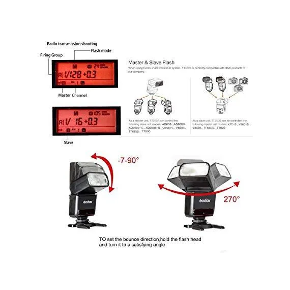 GODOX TT350S 2.4G HSS 1 / 8000s TTL GN36 Camera Speedlite Compatible for Sony Mirrorless Digital Camera
