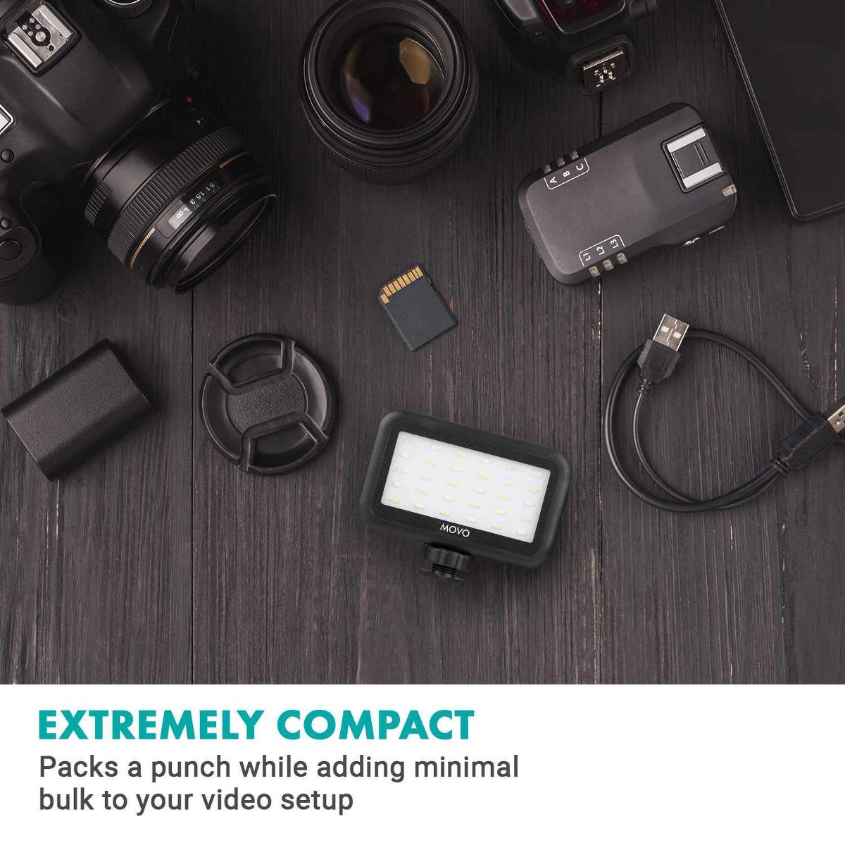 Movo LED-30 Mini LED Light Panel - Adjustable Brightness, Rechargeable Battery