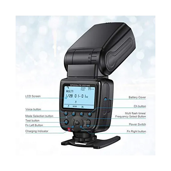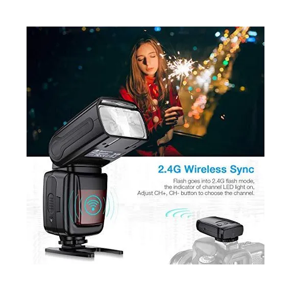 Powerextra LCD Display Flash Speedlite, 2.4G Wireless Flash Trigger Transmitter Kit for Canon Nikon Pentax Panasonic Olympus and Sony DSLR Camera, Digital Cameras with Standard Hot Shoe